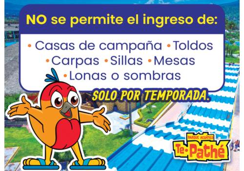 * Debe realizar el pago completo de entradas por transferencia o deposito 1 día previo a su llegada y antes de las 4:00pm